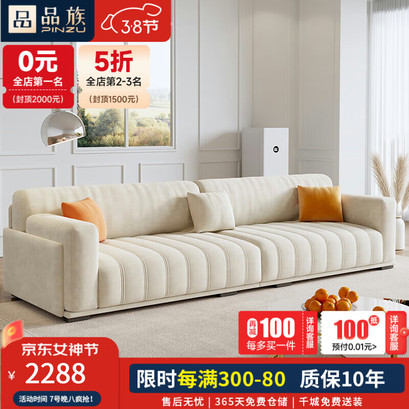 品族奶油风防猫抓绒沙发客厅小户型钢琴键直排沙发AZ-188 2.4米四a价格:3088.00元!