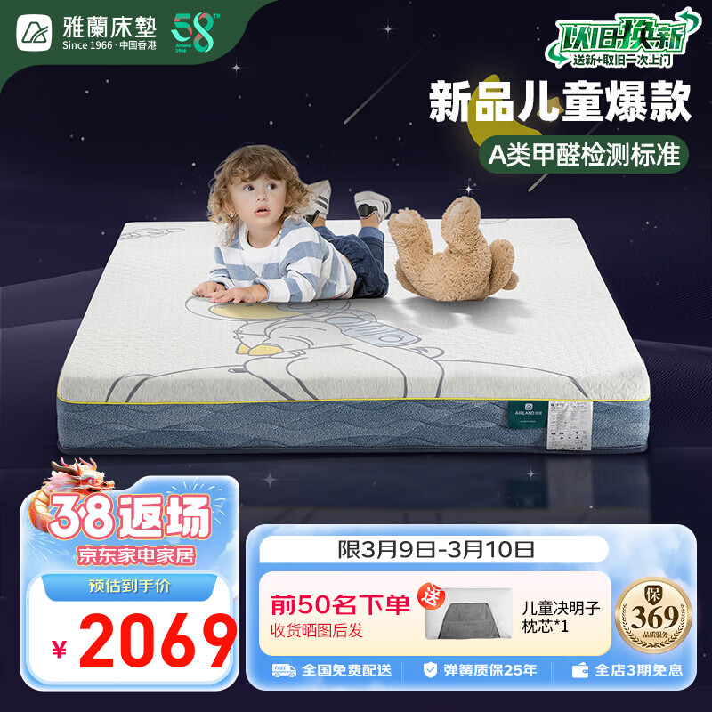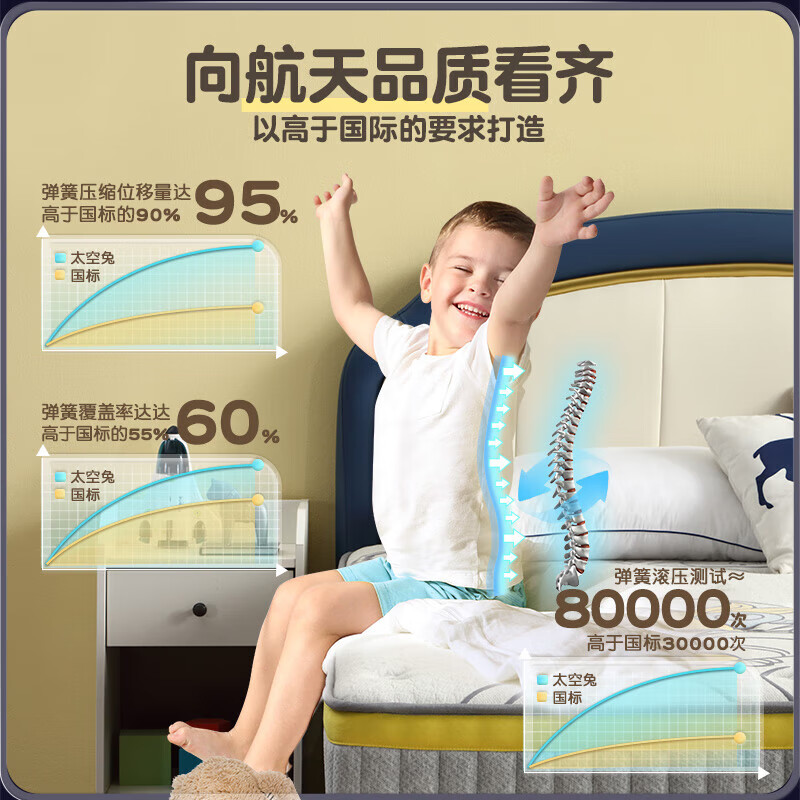雅兰竹炭海绵进口椰棕防撞软边框er童弹簧床垫 太空兔经典版 1.2*2米价格:3069.00元!