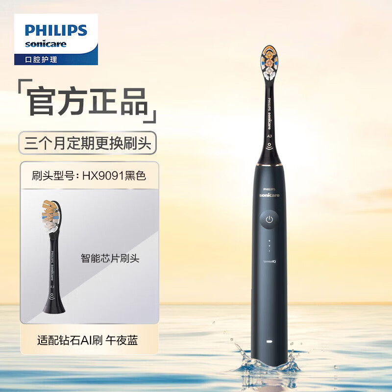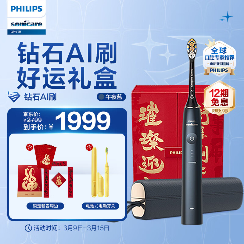 飞利浦(PHILIPS)电动牙刷情侣款 礼物 含皮质充电盒 20倍清除牙菌斑 钻石AI刷礼盒款 午夜蓝价格:2279.00元!