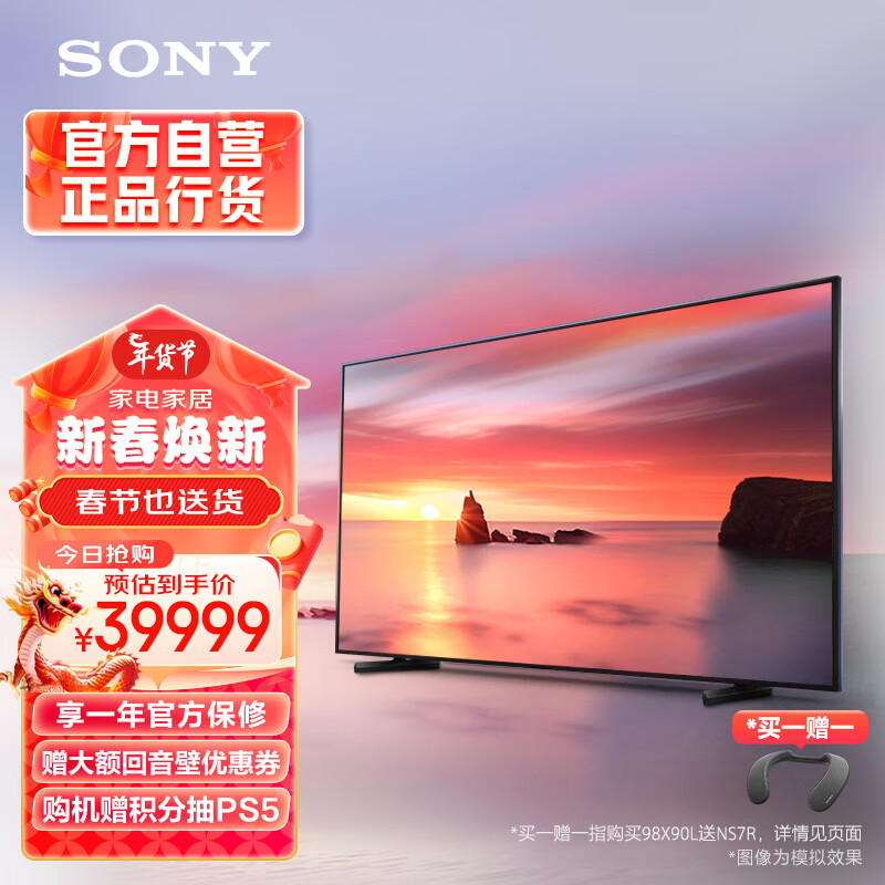 索尼(SONY)【官方直营】XR-98X90L 98英寸 高性能游戏电视 XR认知芯片 4K120Hz高刷液晶金属边框 天幕之镜价格:39999.00元!