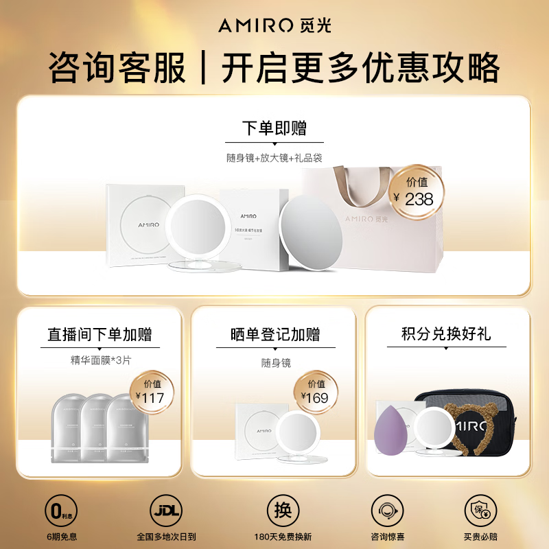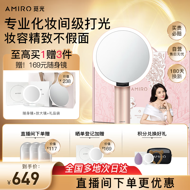 AMIRO觅光化妆镜带灯led日光梳妆美妆镜子补光智能高清台式便捷 生日送女生送老婆 绮梦花园礼盒价格:799.00元!