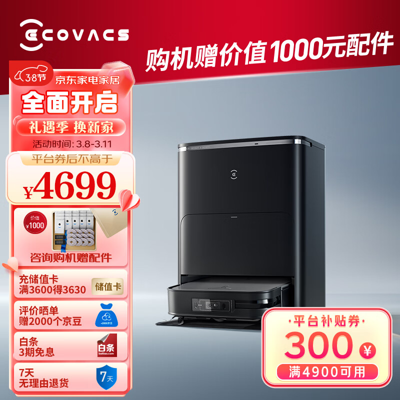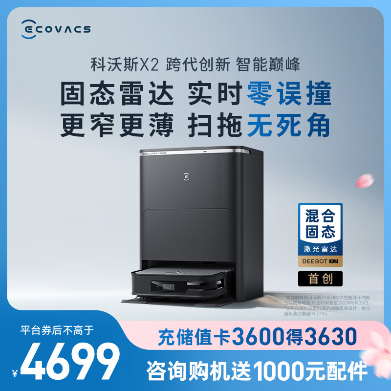 科沃斯(ECOVACS)X2扫地机器人智能家用扫拖一体自动清洗自动集尘热水洗抹布-深空灰DEX86-11EA价格:4999.00元!
