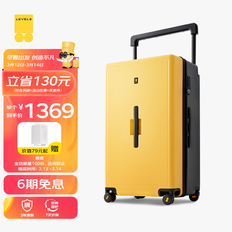地平线8号(LEVEL8)行李箱 男女28英寸大容量宽拉杆万向轮大旅行家PC拉杆箱 黄黑拼色价格:1499.00元!