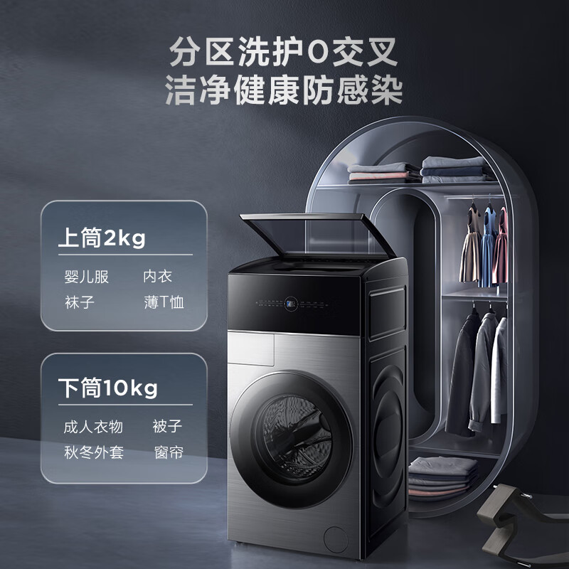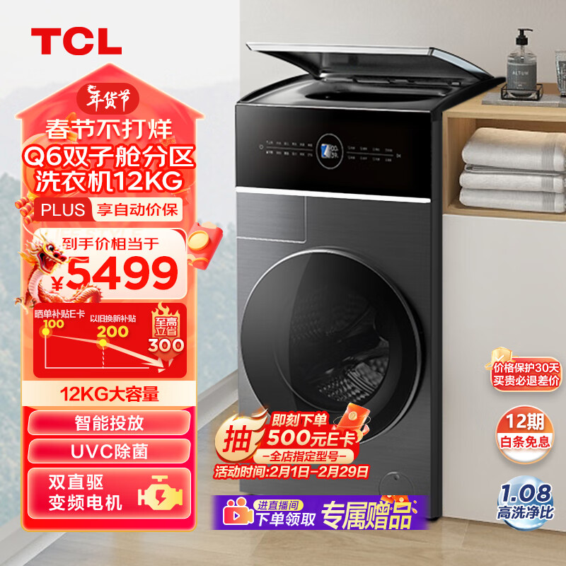 TCL 12KG双子舱·复式分区洗衣机Q6 母婴分类洗烘一体 直驱双变频 全自动滚筒 智能投放 G120Q6-HDY价格:5499.00元!