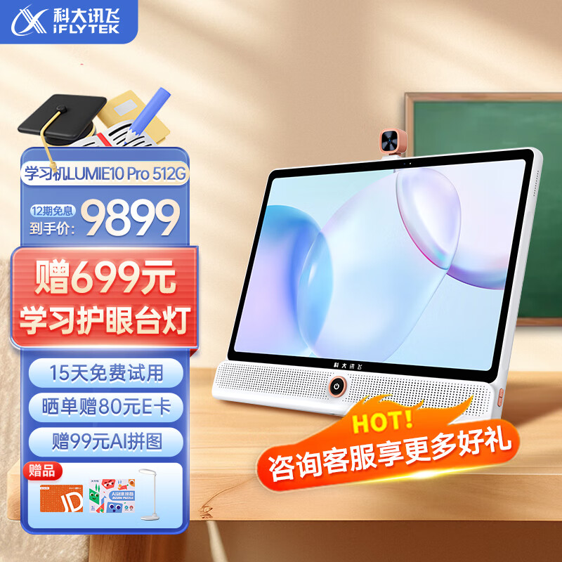 科大讯飞AI学习机LUMIE10 Pro (8+512GB) 星火认知模型 全龄段 大屏护眼 学生平板 英语学习 17英寸价格:9899.00元!