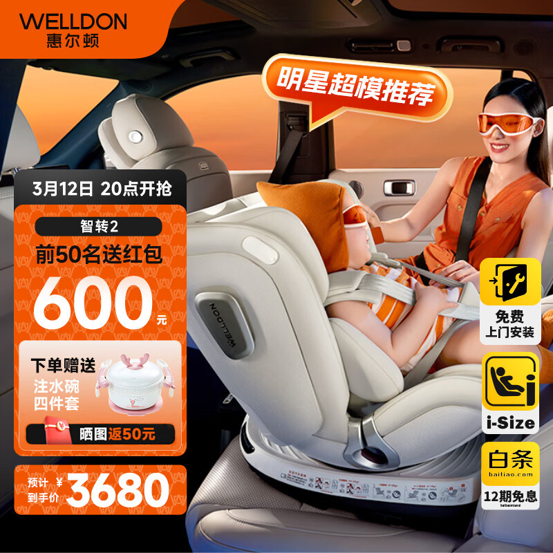 惠尔顿智转2婴儿童座椅0-4-7岁全龄i-Size认证舒适头等舱360度旋转价格:3680.00元!