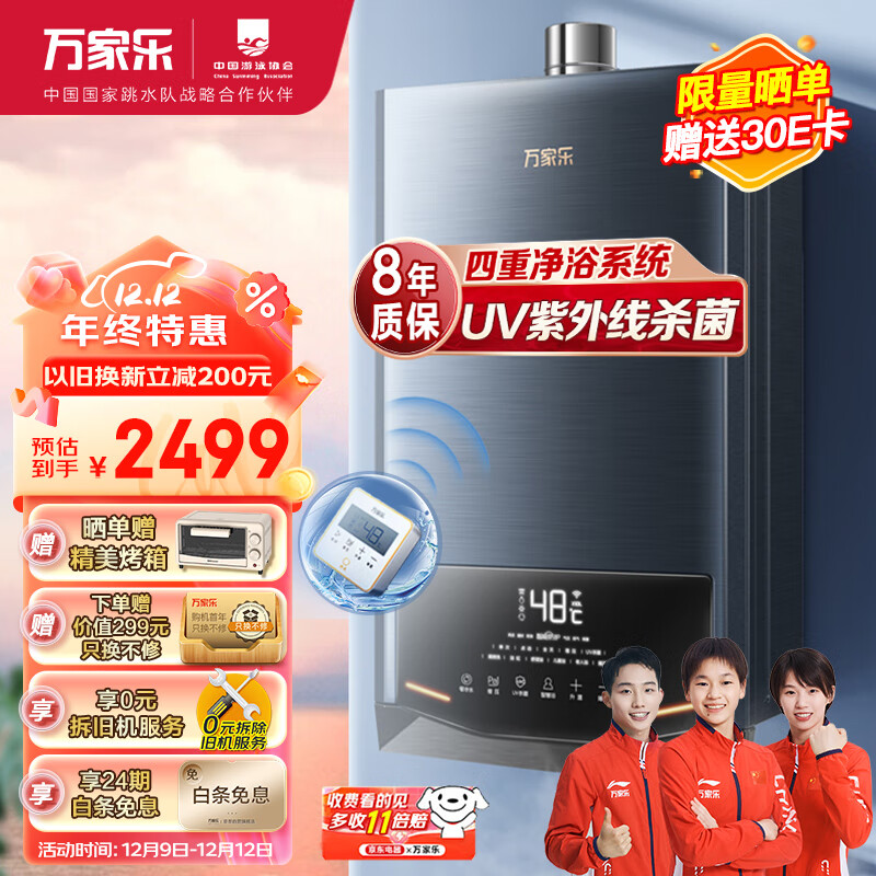 万家乐 18升增压零冷水燃气热水器 净滤健康活水无线双屏分控AI智能沐浴紫外线杀菌阻垢滤芯JSQ34-18RL8价格:2499.00元!