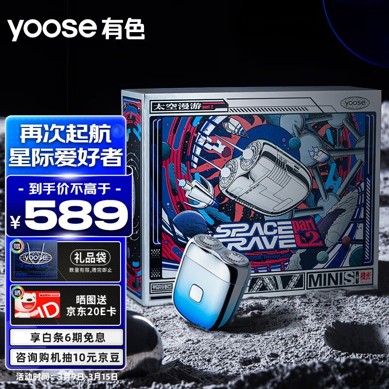 有色(yoose)电动剃须刀 迷你便携刮胡刀 合金机身 男士差旅生日礼物送男友 胡须刀礼盒 太空漫游款价格:689.00元!