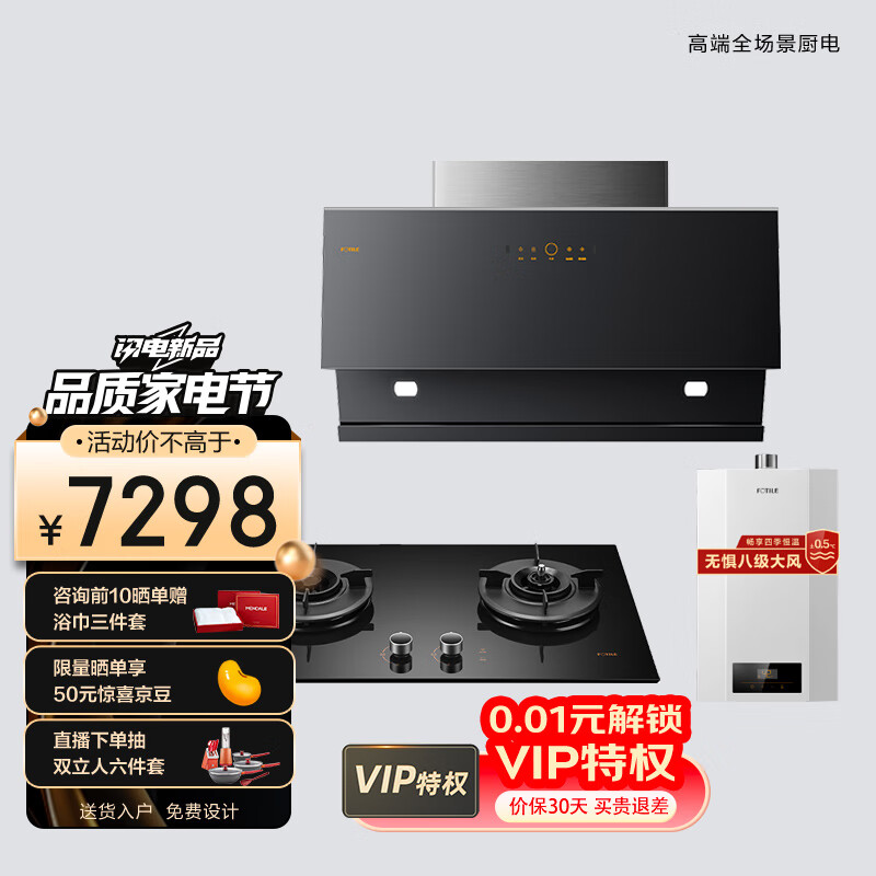 方太(FOTILE)家用厨房烟灶热三件套 24风量直流变频烟机 5.2kW燃气灶 16L强排燃气热水器JCD16T+02-TH27B+P16D1价格:7298.00元!