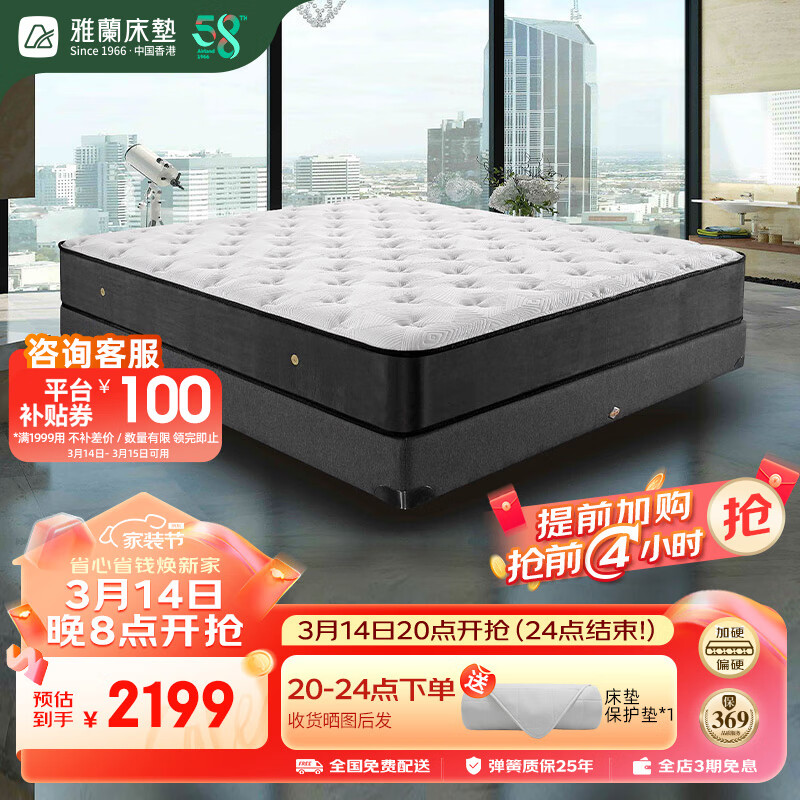 雅兰50周年纪念款 亲肤透气整网弹簧椰棕床垫 蘭朋友加硬版 1.5*1.9米价格:2699.00元!