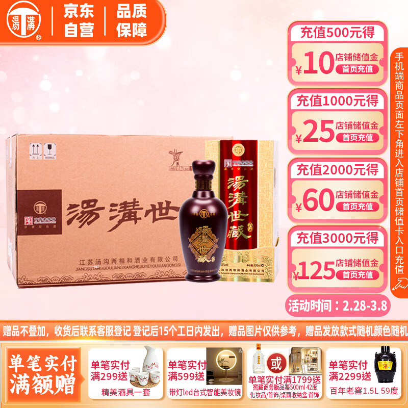 汤沟酒 世藏一代 浓香型白酒 42度 500ml*6瓶 整箱装价格:1592.00元!
