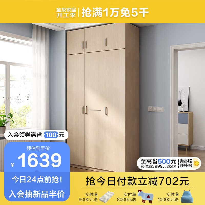 全友家居 衣柜自然原木风木纹衣柜多规格组合卧室储物柜子106302价格:2341.43元!