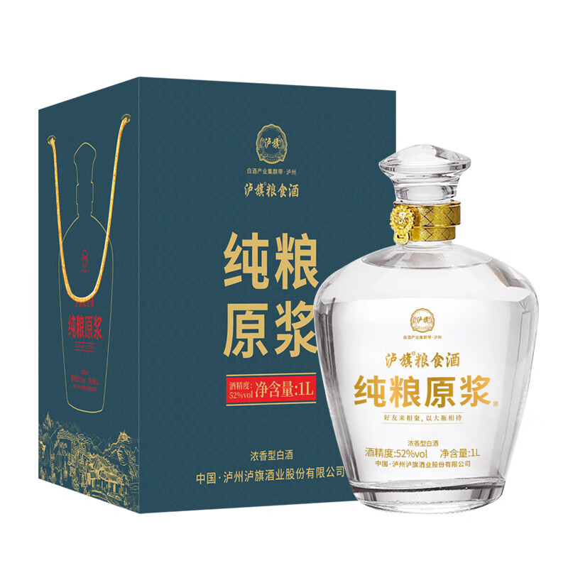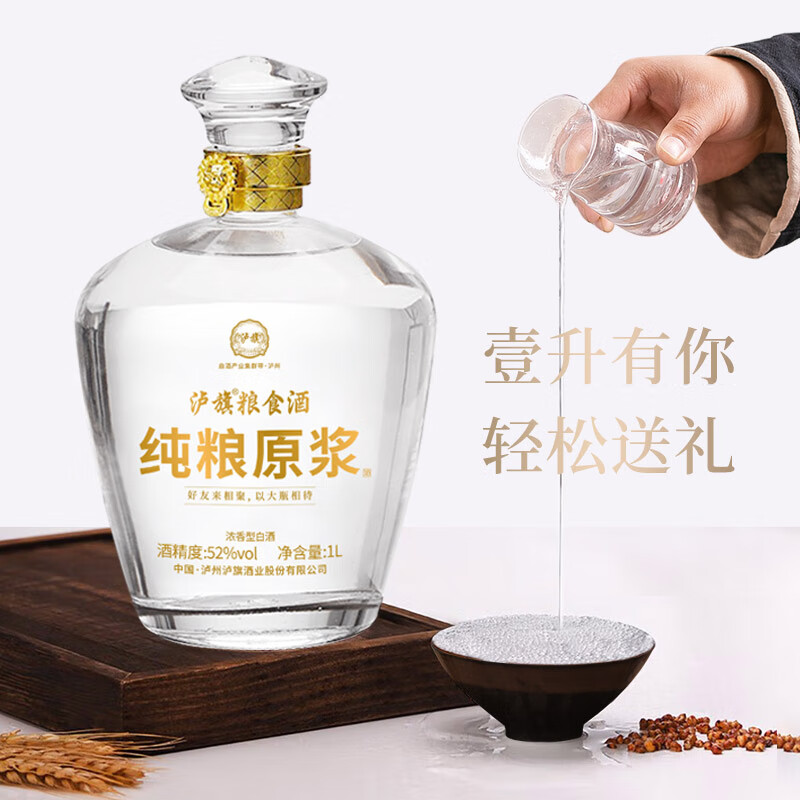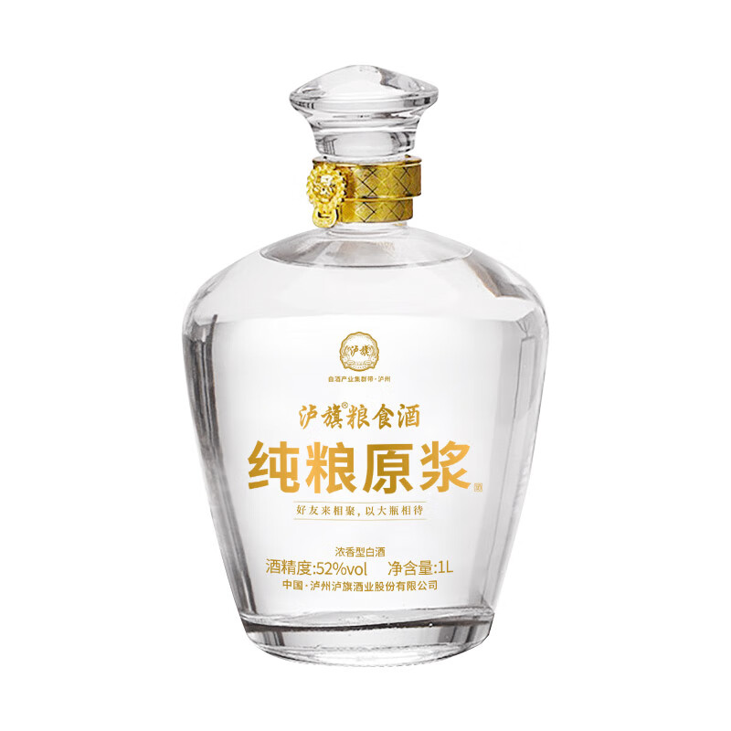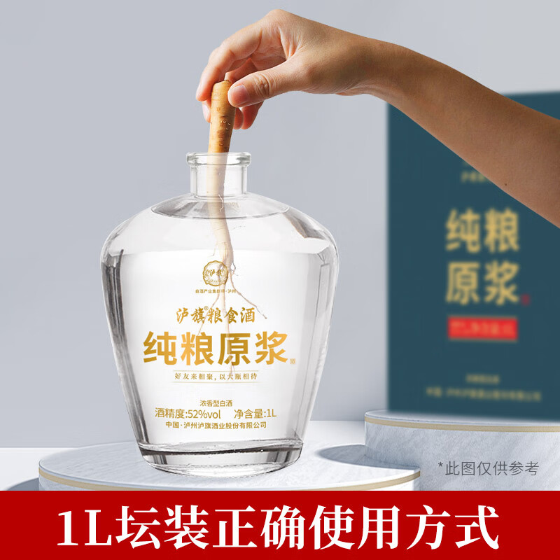 泸旗泸州52度纯粮原浆1000ml 浓香型高粱酒 玻璃坛装纯粮食白酒 价格:59.00元!