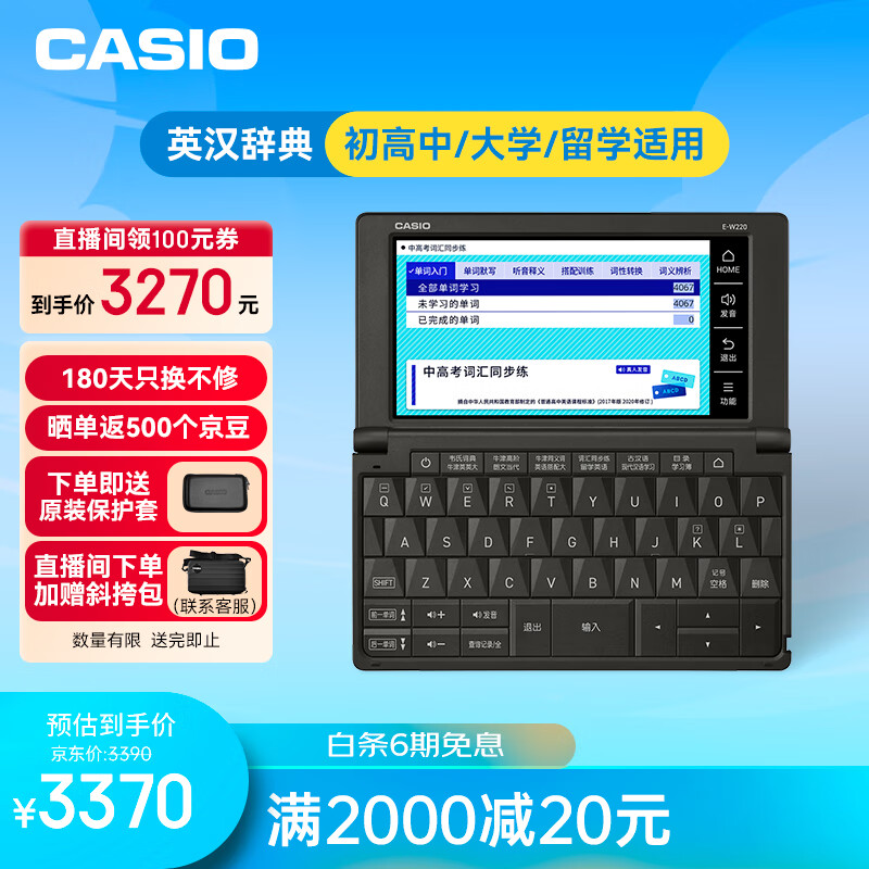卡西欧(CASIO)卡西欧电子词典 E-W220BK 英汉电子辞典、初高中、大学、留学适用 水墨黑价格:3390.00元!