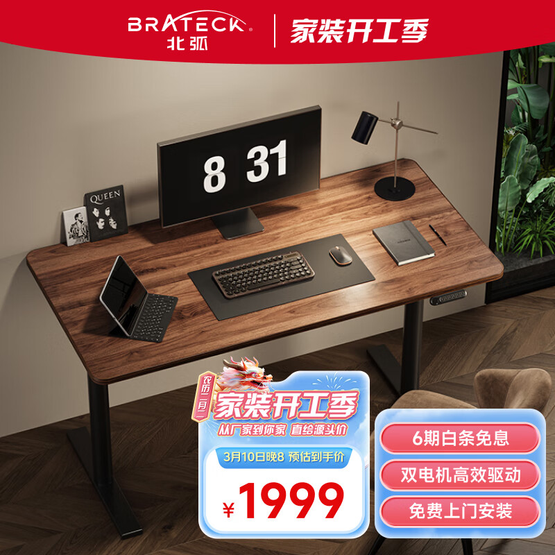 Brateck双电机电动升降电脑桌 北弧站立办公升降书桌 升降台 M1棕1.2米价格:2349.00元!