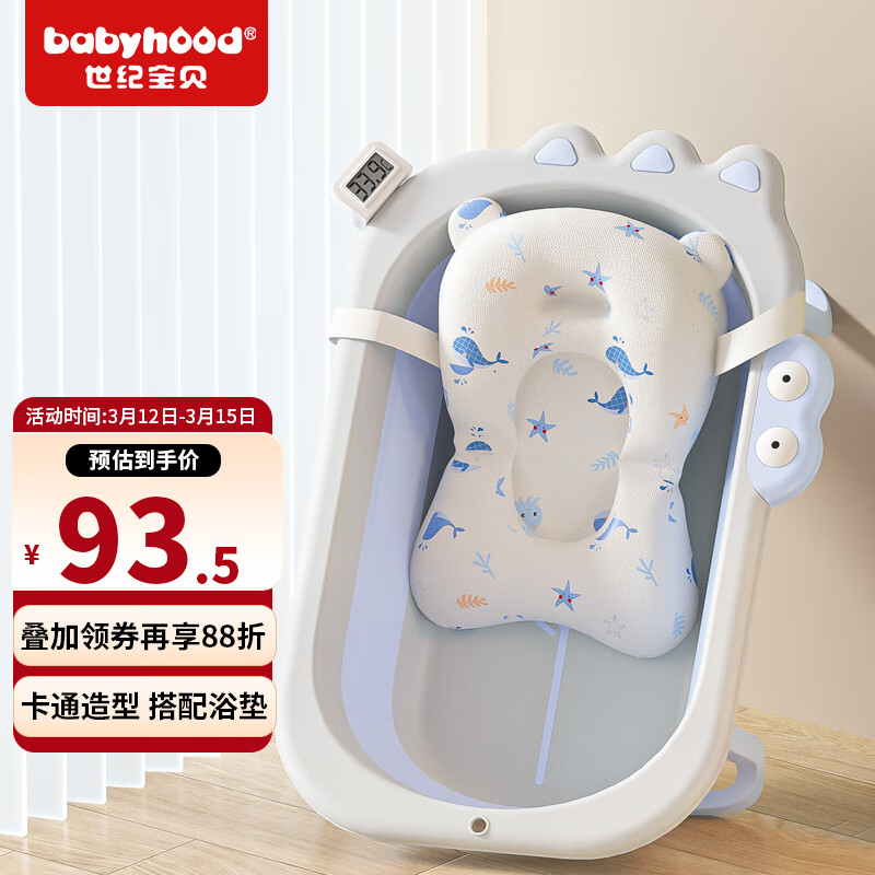 世纪宝贝(babyhood)婴儿洗澡盆 宝宝折叠浴盆 儿童可坐躺澡盆 赠浴垫+水温计 327+212价格:129.00元!