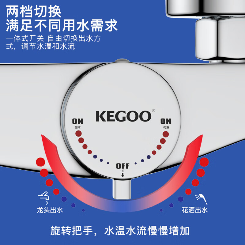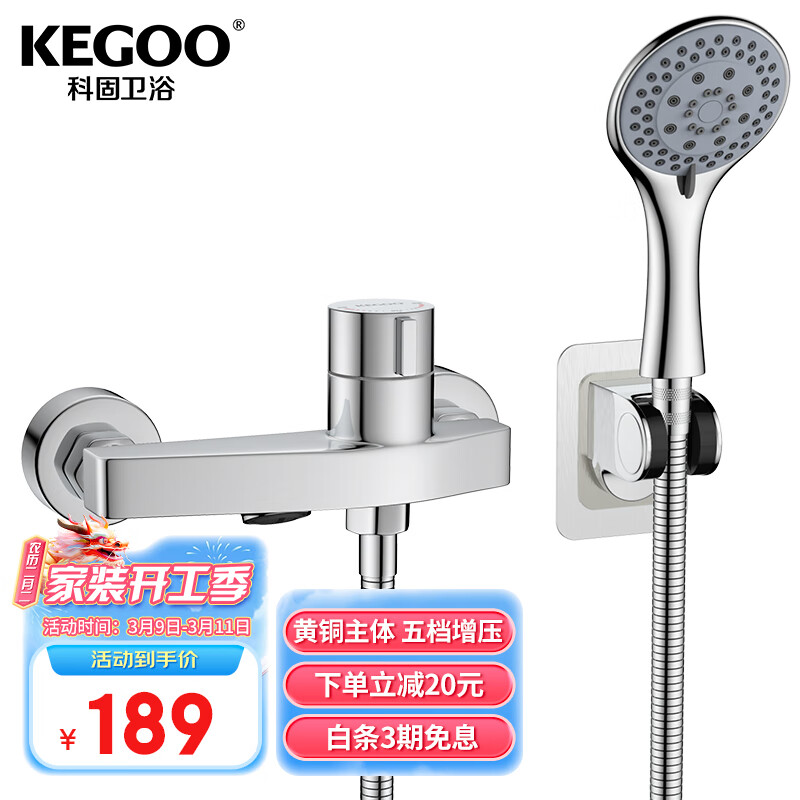 科固(KEGOO)淋浴水龙头手持喷头软管三件套 浴室冷热混水阀简易花洒套装K3008价格:209.00元!