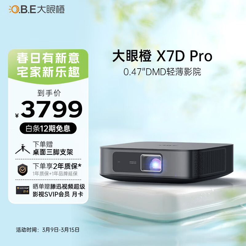 大眼橙 X7D Pro投影仪家用 投影机家庭影院(0.47DMD轻薄旗舰 2000ANSI高亮 无感自动梯形校正)价格:3999.00元!