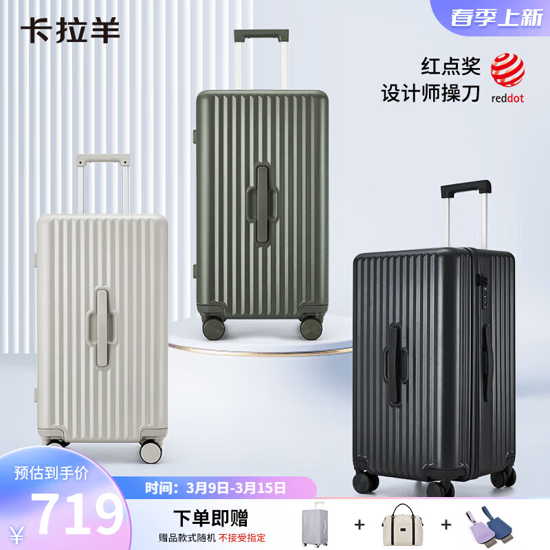 卡拉羊百褶箱大容量魔方体行李箱28英寸拉杆箱男女旅行箱8118燕麦灰价格:819.00元!