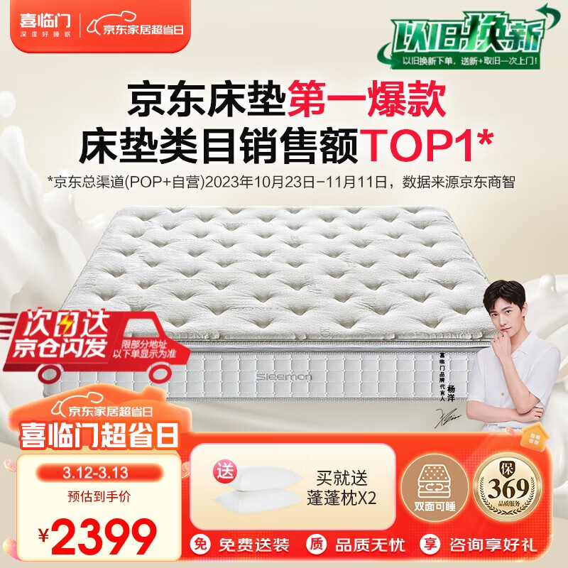 喜临门床垫 2cm高纯乳胶独袋弹簧床垫 3D黄麻床垫 白骑士plus 1.5x2米价格:2399.00元!