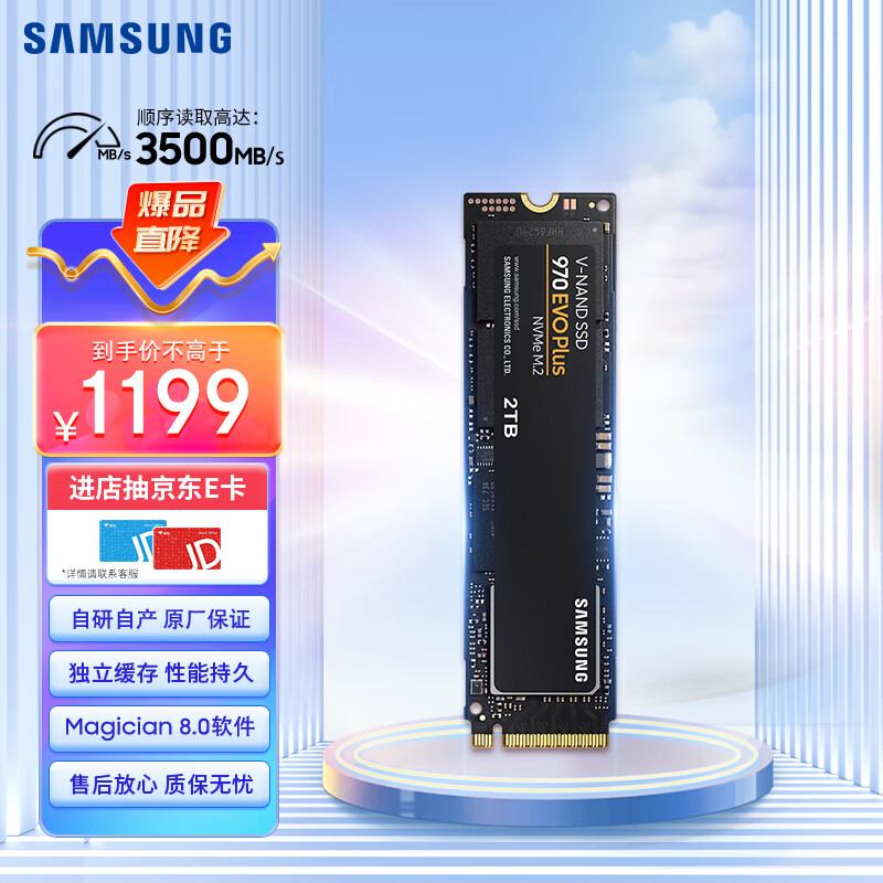 三星(SAMSUNG) 2TB SSD固态硬盘 M.2接口(NVMe协议) 970 EVO Plus(MZ-V7S2T0B)价格:1199.00元!