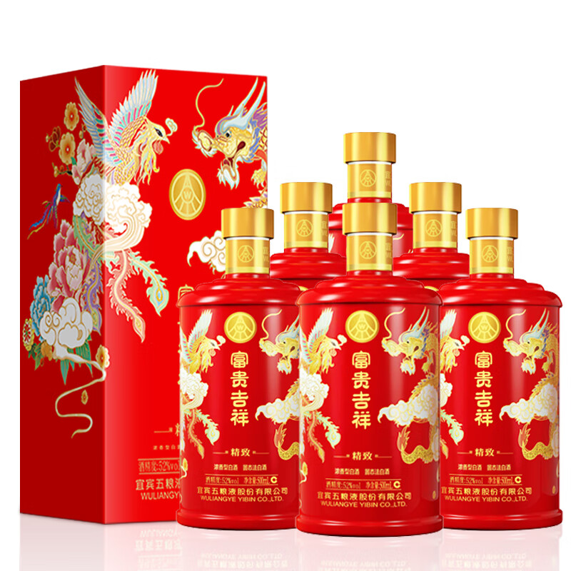 五粮液股份 婚宴喜酒 富贵吉祥精致52度500ml*6瓶 固态法浓香型纯粮食酒价格:1178.00元!