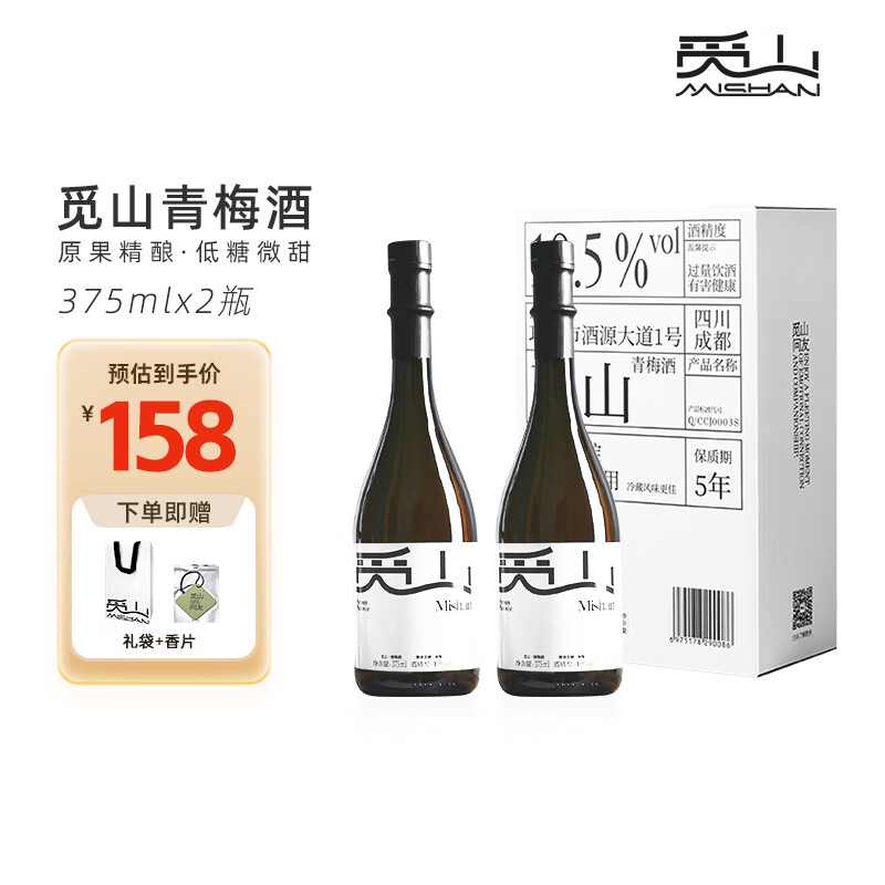 觅山青梅酒10.5度375ml*2原果发酵低糖微甜微醺果酒低度甜酒梅子酒价格:158.00元!