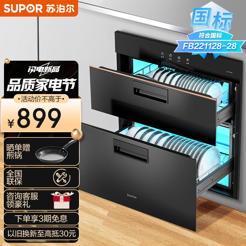 苏泊尔(SUPOR)消毒柜消毒碗柜大容量家用嵌入式二消毒柜可杀幽门螺旋杆菌 90L大容量消毒柜303S价格:899.00元!