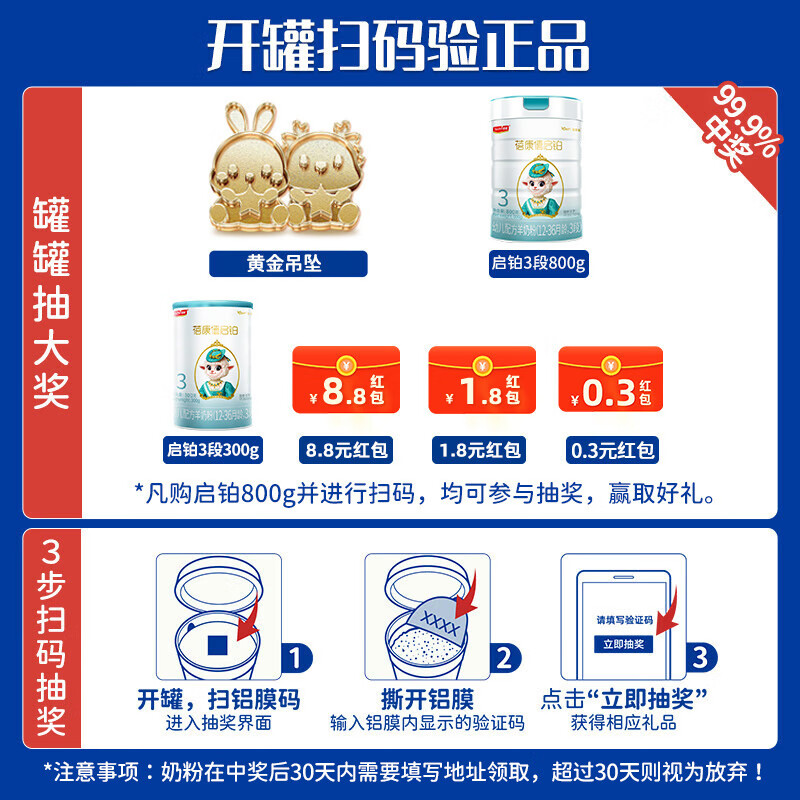 蓓康僖启铂系列益生菌800g三段配置参数:
