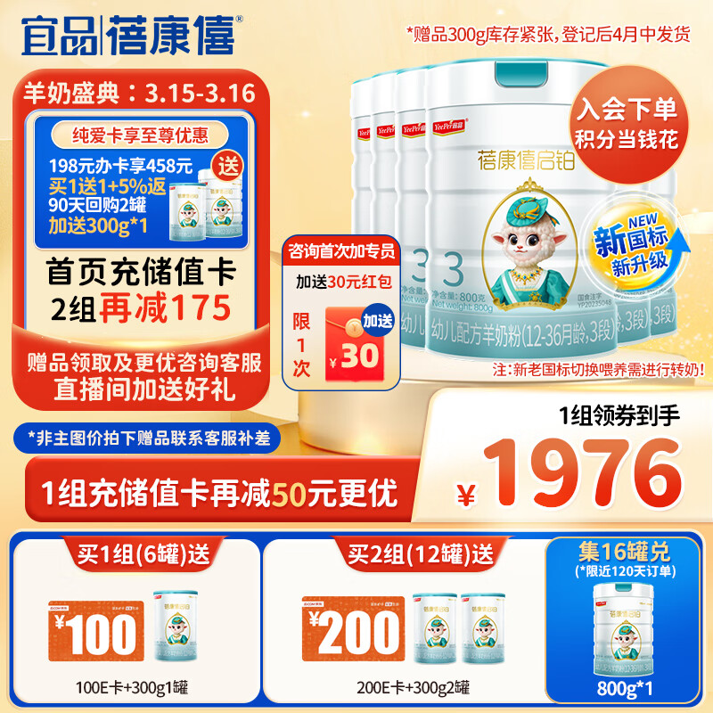 蓓康僖(bekari)新国标启铂绵羊奶粉3段1-3岁适用幼儿配方800g*6罐套装价格:2380.00元!