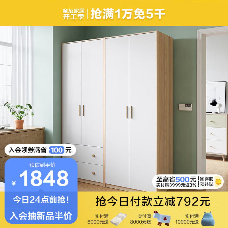 全友家居 衣柜现代北欧风二门衣柜卧室储物家具平开门衣柜126331价格:2640.00元!