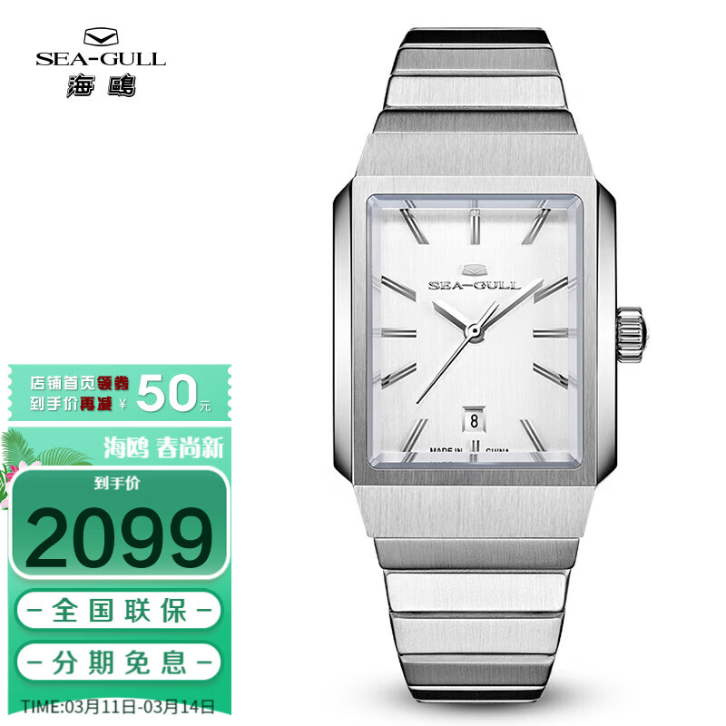 海鸥(SEAGULL)手表女士自动机械表 送女友礼物 日历腕表826.12.6169L(冰糖块)价格:2309.00元!