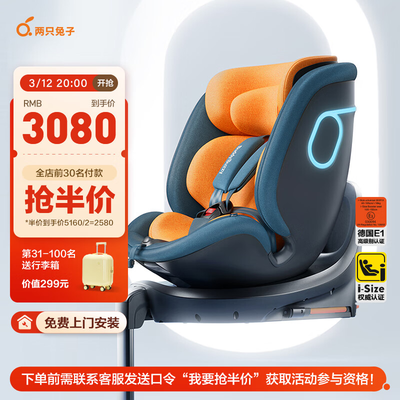 两只兔子求知2智能通风车载婴儿童座椅0-4-12岁宝宝汽车用 星橙价格:4180.00元!