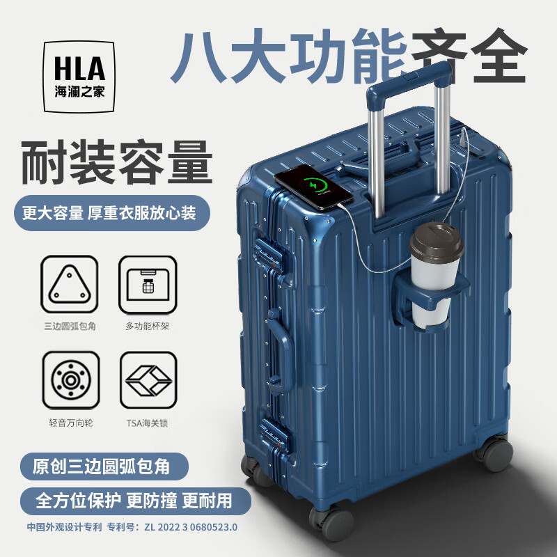 海澜之家(HLA)行李箱男女学生铝框拉杆箱旅行密码托运皮箱 雾霾蓝26英寸价格:449.00元!