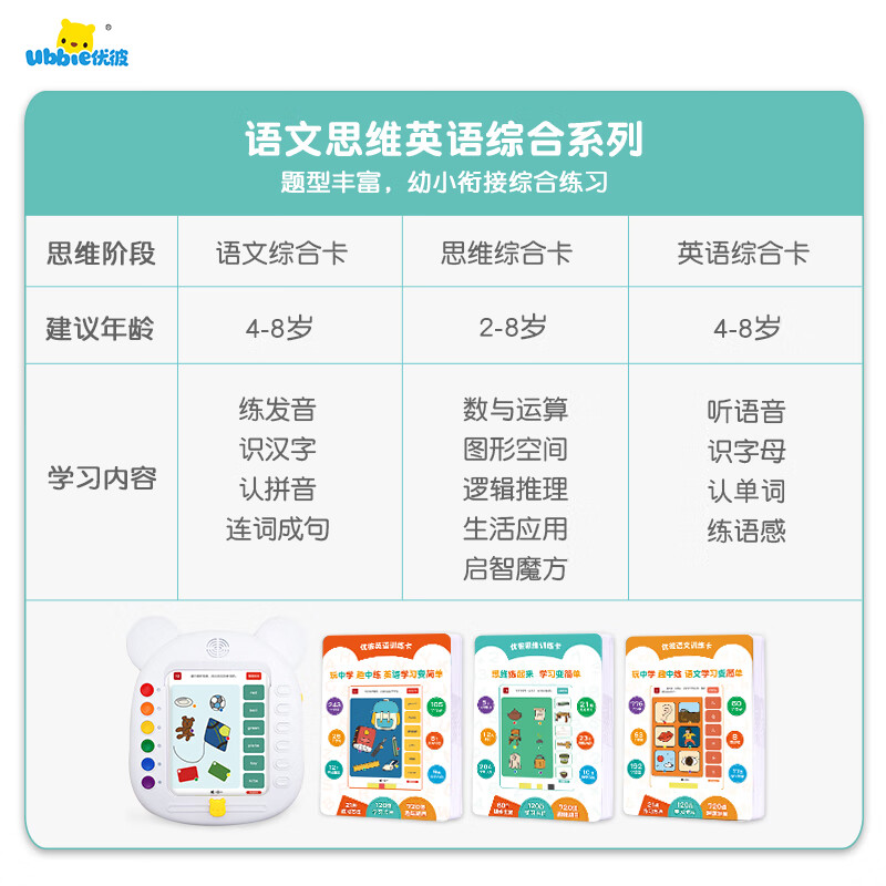 优彼学习训练机识字卡片机思维训练机英语单词诗词学习儿童新年礼物价格:769.00元!