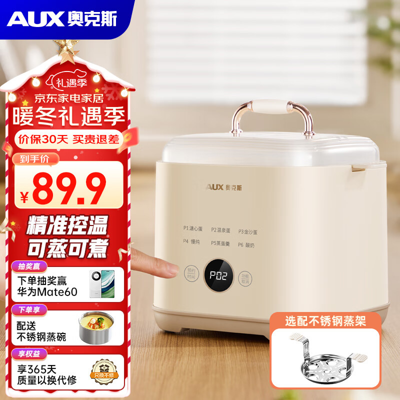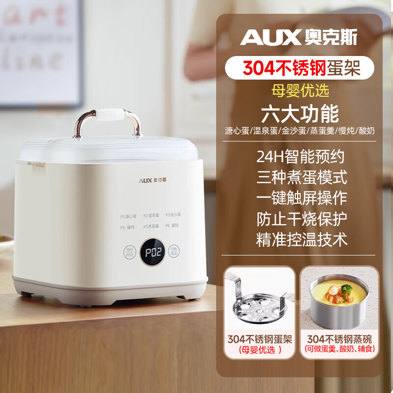 奥克斯煮蛋器 家用迷你智能蒸蛋器 温泉蛋煮蛋神器 自动断电精准控温多功能煮蛋机AZD-03A201不锈钢蒸架价格:86.90元!