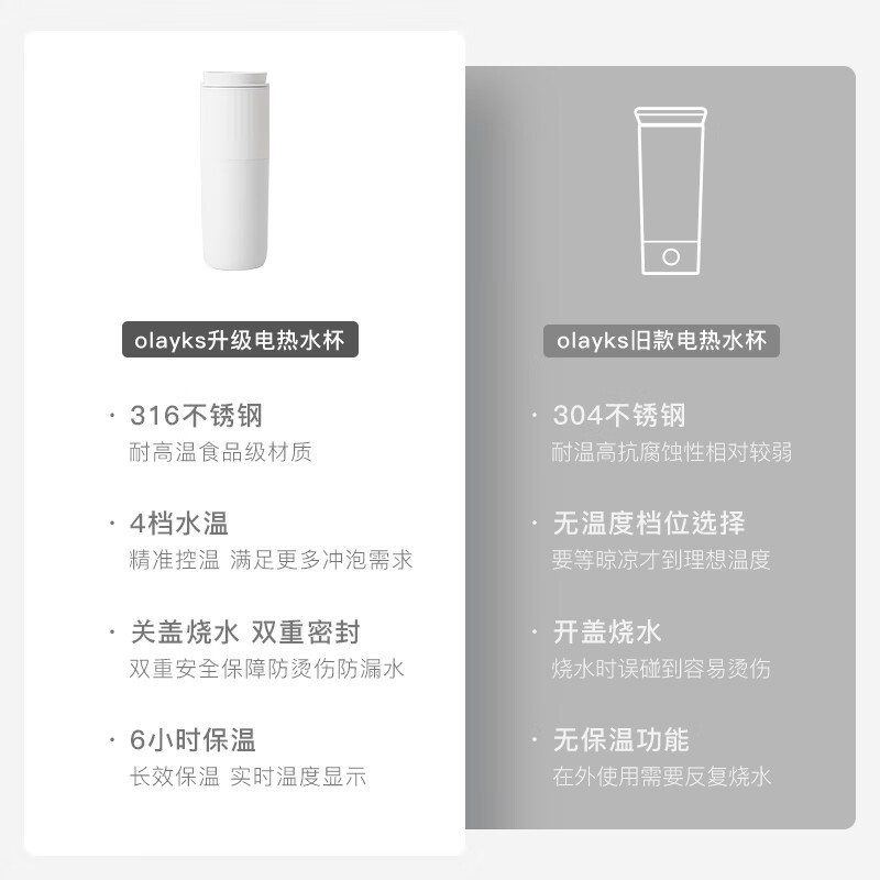 olayks电热水壶 车载烧水杯 便携式烧水壶 旅行恒温水壶开水壶电热水杯保温一体316不锈钢保温杯价格:169.00元!