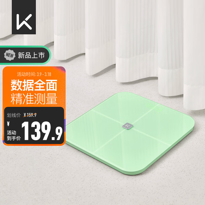 Keep体脂秤S2 家用智能电子秤APP数据测量WIFI/蓝牙双连接 抹茶绿价格:159.90元!