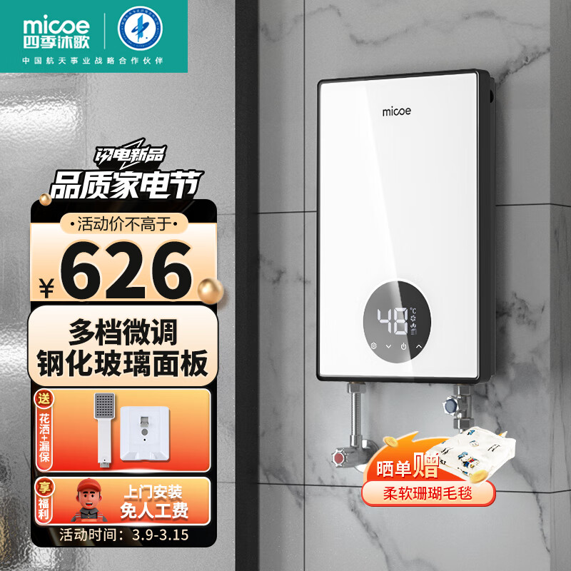 四季沐歌(MICOE)即热式电热水器7000W 速热五档变频智能恒温 超薄机身健康淋浴扁桶小型热水器DSK-H70-M3S5价格:626.00元!