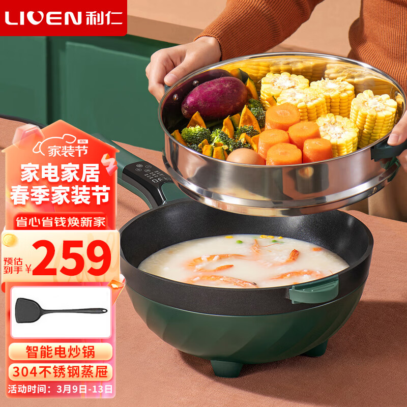 利仁(Liven)电炒锅 电蒸锅 电煮锅 电火锅家用火锅锅 多功能电热锅烤肉锅多用途蒸煮一体锅4升微电脑 G-82价格:259.00元!