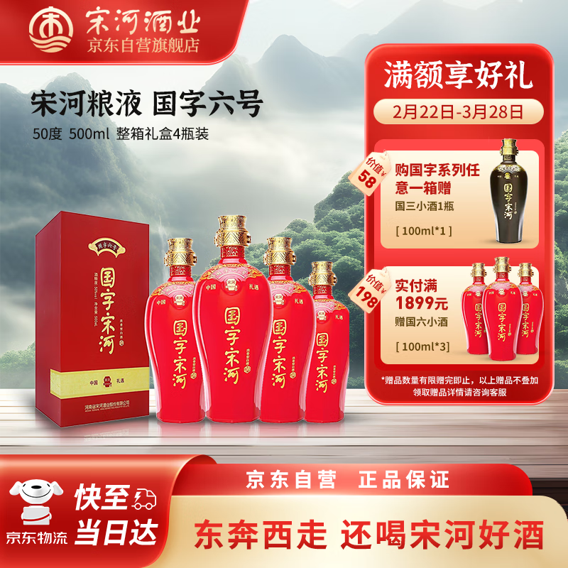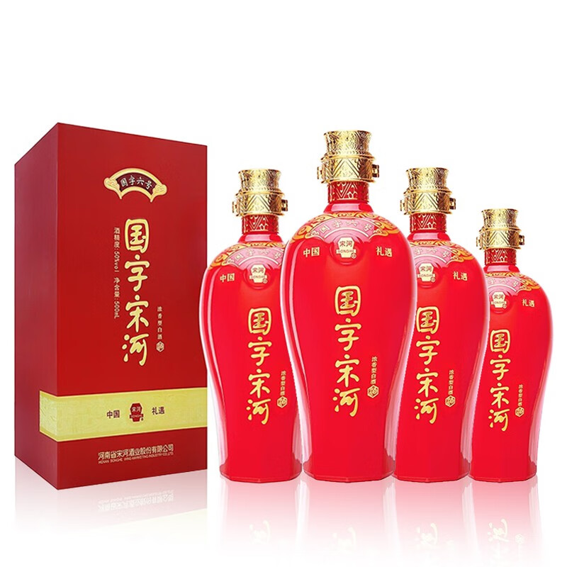 宋河粮液 国字六号 浓香型白酒 50度 500ml*4瓶 礼盒整箱装 送礼价格:884.00元!