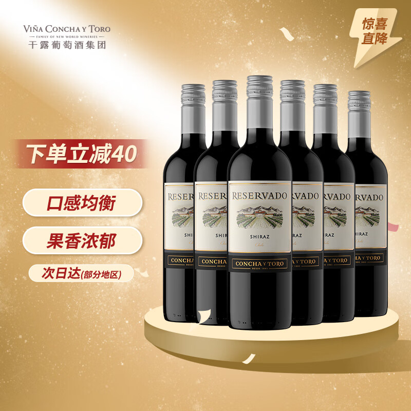 Concha y Toro干露珍藏西拉干红葡萄酒750ml*6瓶整箱 智利进口热红酒价格:219.00元!