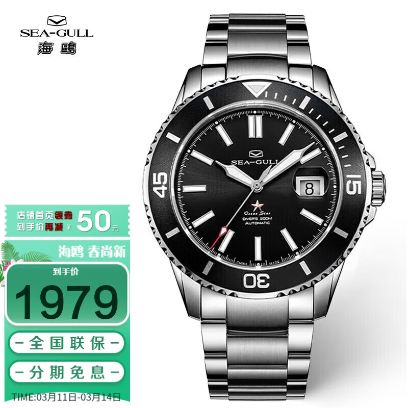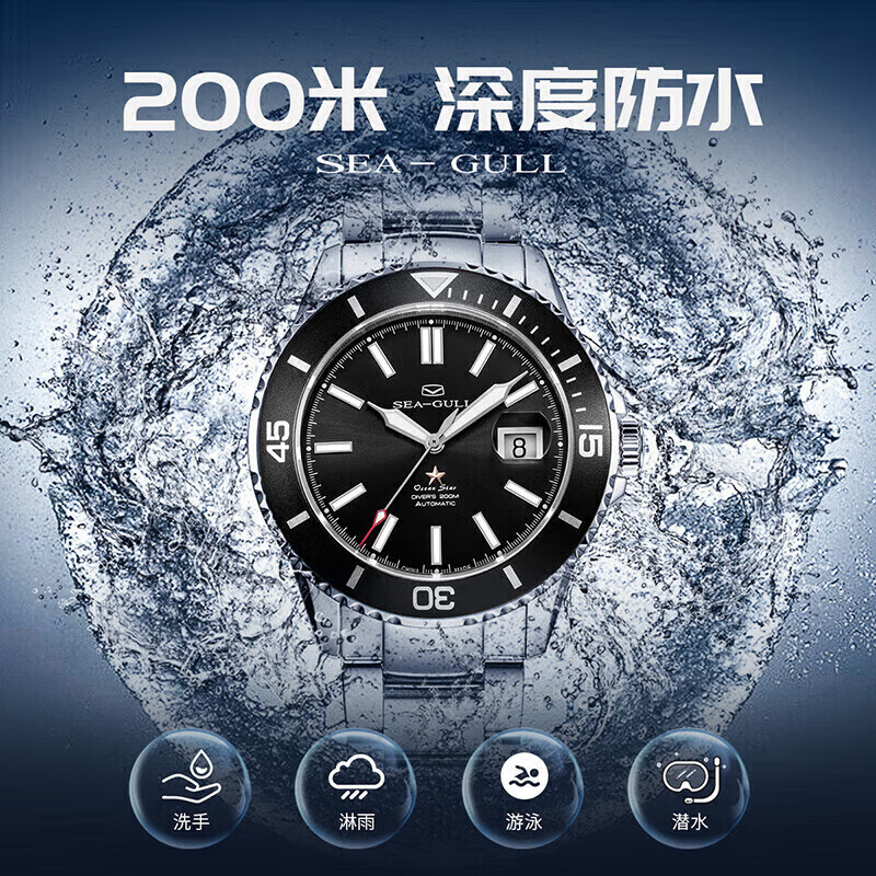 海鸥(SEAGULL)手表男士自动机械表 男表 海洋之星200米防水潜水腕表816.523(黑)价格:2189.00元!