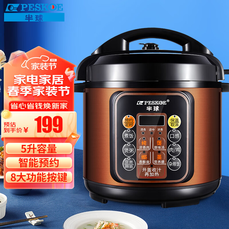 半球(PESKOE)电锅高压锅家用煮饭煲 5升多功能智能预约电饭锅X550(单胆)价格:199.00元!