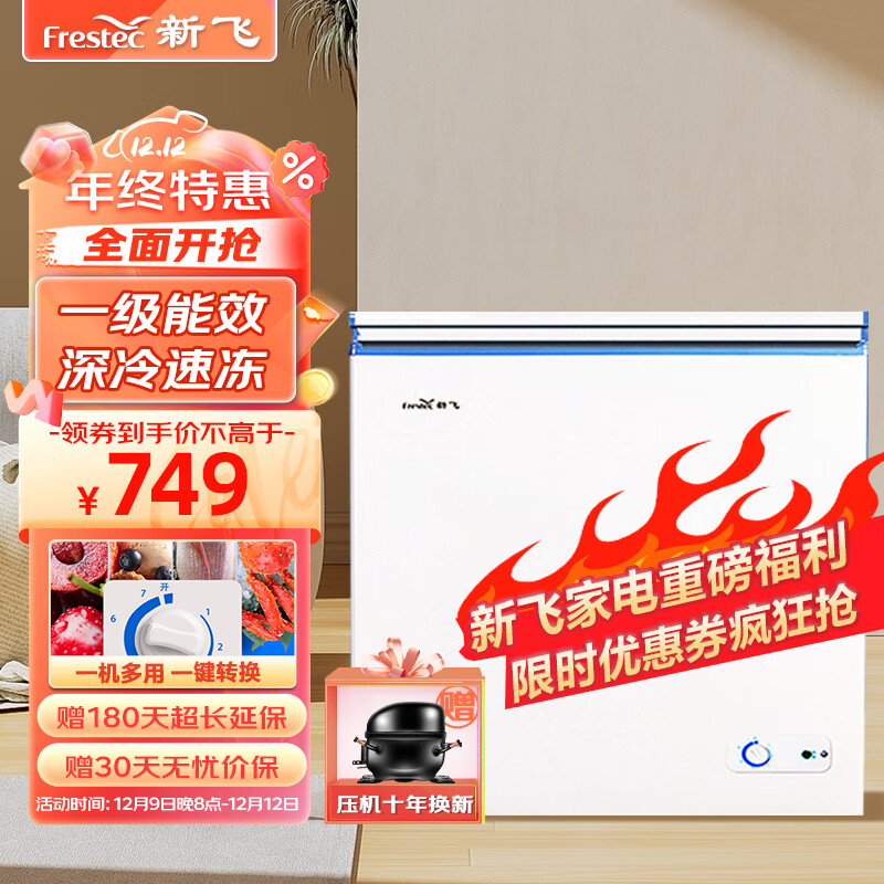 新飞(Frestec)201升冷藏冷冻转换一级能效家用商用变温冷柜卧式冰箱冰柜(白色)BC/BD-201KHAT价格:799.00元!