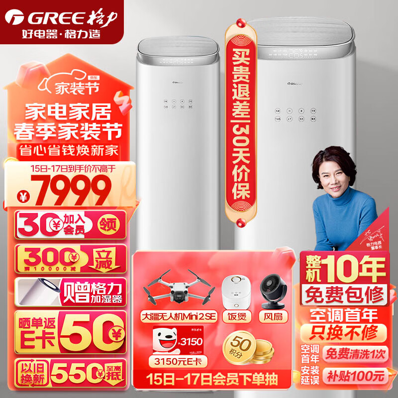 格力(GREE)2匹 京致 冷暖分送 衡温空间 自清洁 智能 客厅空调立式空调柜机KFR-50LW/NhAj1BGj价格:7999.00元!