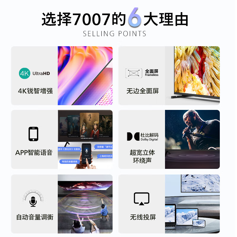 飞利浦(PHILIPS) 65英寸4K网络智能高清屏平板液晶电视机 手机投屏 手机APP语音 1.5G+8G内存 65PUF7007/T3 官方标配价格:2199.00元!