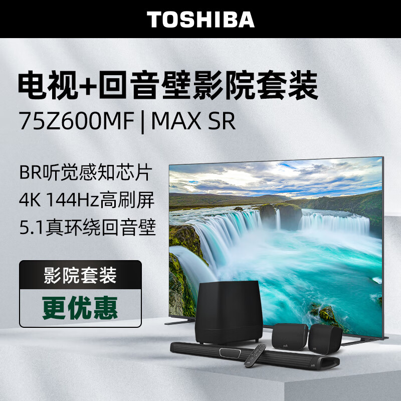 东芝电视75Z600MF+MAX SR沉浸追剧套装 75英寸4K 144Hz高分区 BR听觉感知芯片 客厅巨幕火箭炮电视机价格:9279.00元!