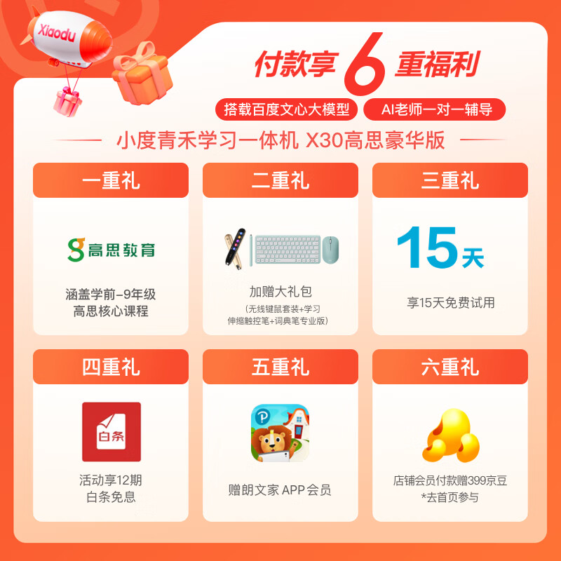 小度青禾学习一体机X30高思豪华版(8+256G)17.4英寸小学到高中平板电脑 百度文心大模型 XD-SDD17-2301价格:7999.00元!
