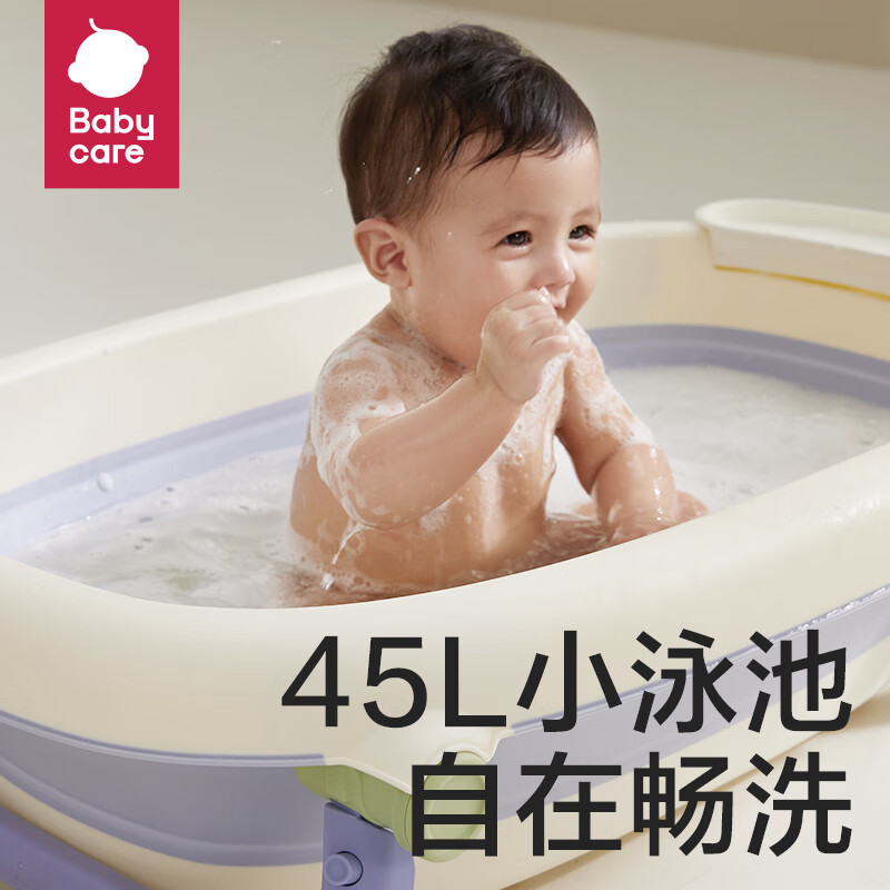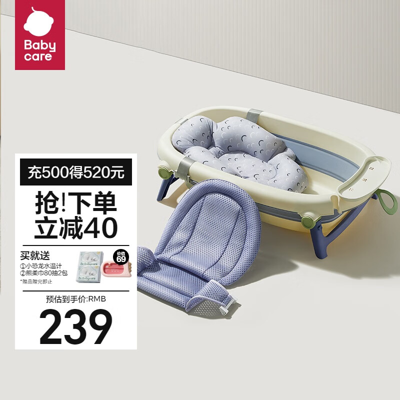 babycare儿童大号可折叠浴盆2.0 沐浴洗澡盆可坐躺 浴盆+浴垫+浴网 冰川蓝价格:279.00元!